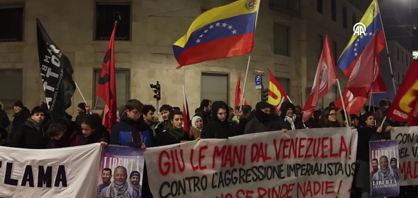 İtalya’nın Milano ve Napoli kentlerinde de Venezuela’ya yönelik operasyonları nedeniyle ABD’ye karşı protesto şovları düzenlendi.