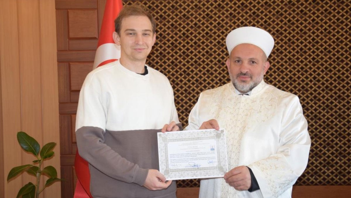 Ukrayna vatandaşı Roman Iastremskyi, Giresun İl Müftülüğünde düzenlenen ihtida merasiminde kelime-i şehadet getirerek müslüman oldu.